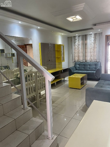 - Sala com 2 ambientes, piso frio e sanca de gesso no teto.