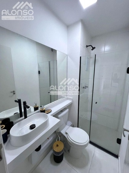 Ap com 2 dormitórios, sendo 1 suíte (com cama e cabeceira), sapateira embutida, banheiro com box, pia e espelho; armário planejado no segundo dormitório, banheiro social, sala espaçosa e integrada à cozinha e sacada (fechada em vidro), sistema de iluminação, sala de estar com sofá e televisão com painel), coziha repleta de armários, cooktop, geladeira, microondas, exaustor, aquecedor e utensílios!