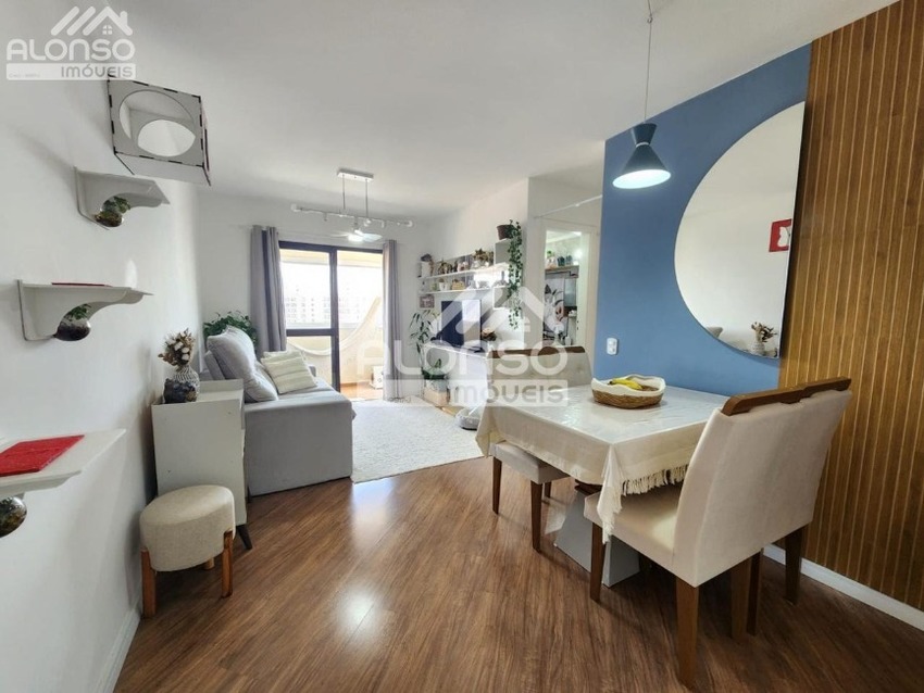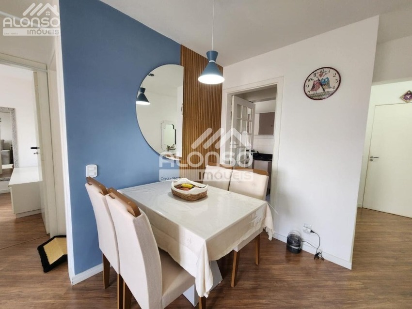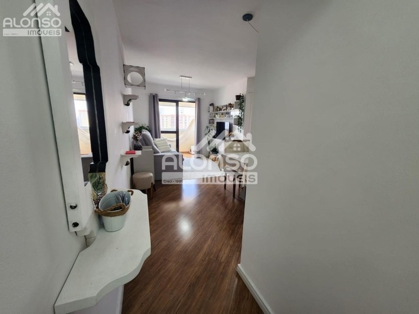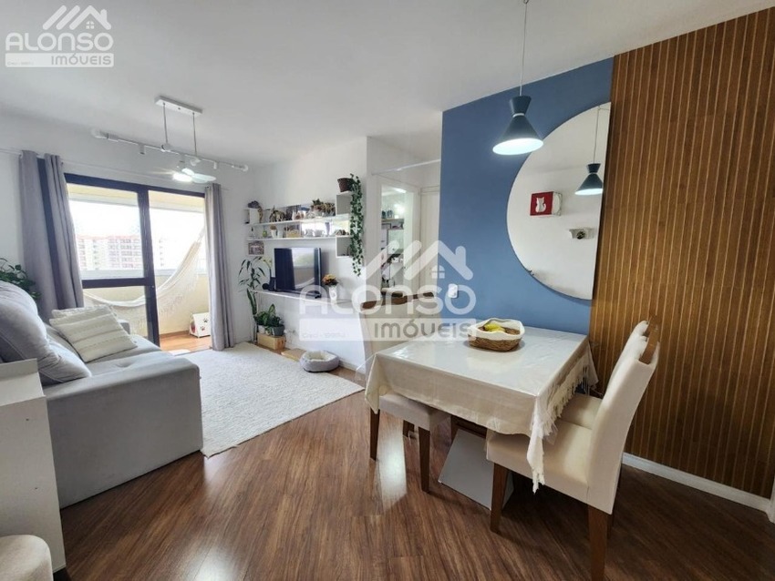 Apartamento de 60m², armários nos dormitórios, sala 2 ambientes com sacada fechada em vidro, banheiro social, cozinha planejada e área de serviço. Possui 1 vaga de garagem.