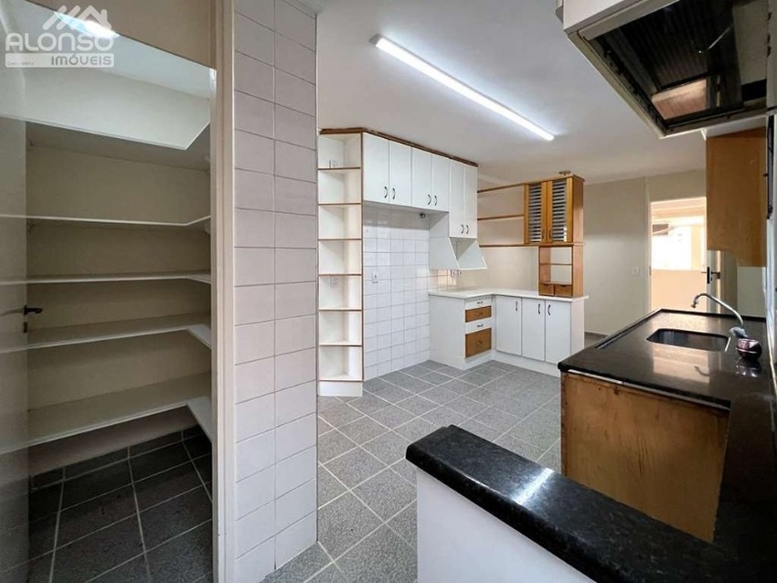 - cozinha repleta de armários e despensa