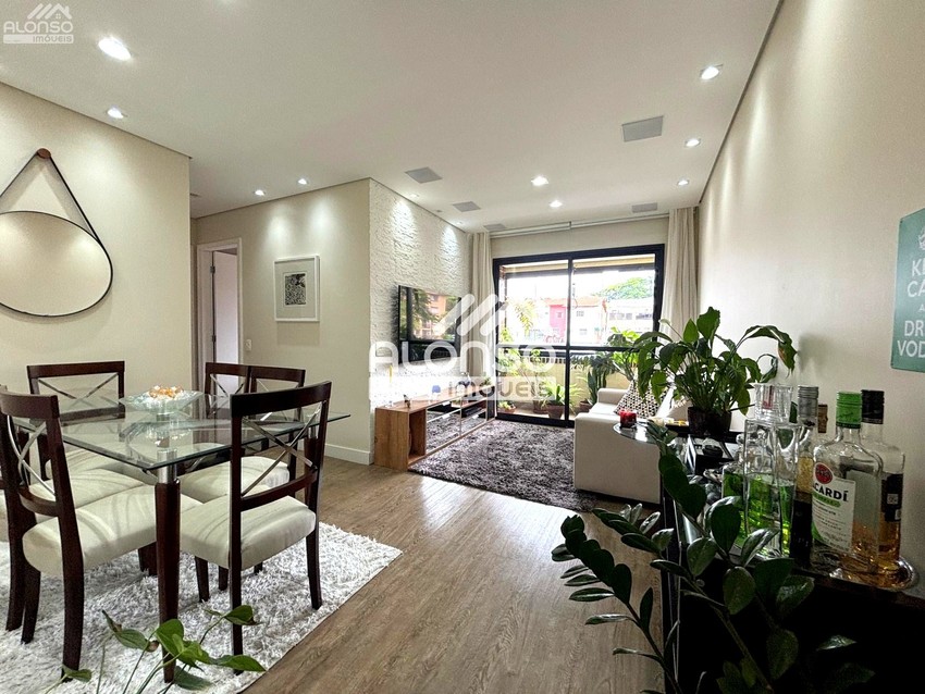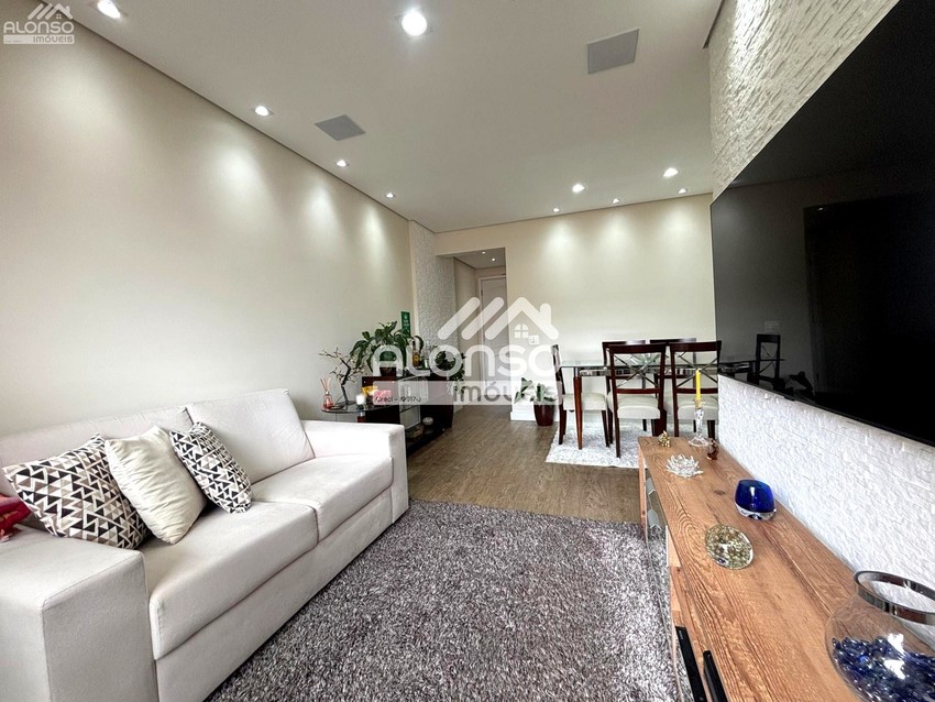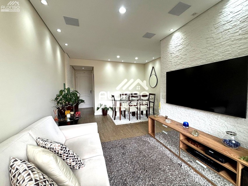 Living: Sala ampliada para 02 ambientes, integrada a uma charmosa sacada com fechamento em vidro, garantindo iluminação natural e conforto térmico.