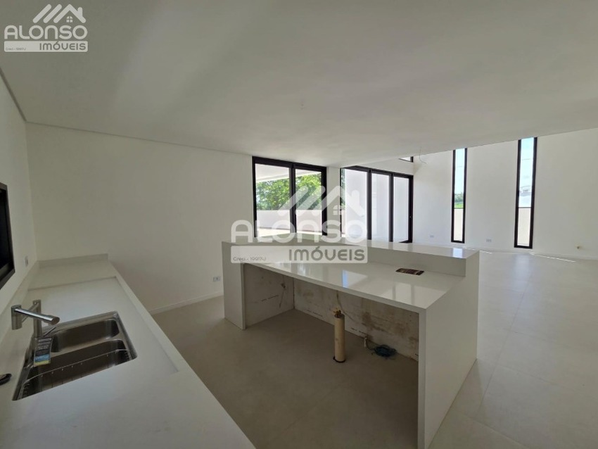 - Residência térrea com plena integração entre os ambientes, pé-direito duplo e iluminação natural abundante, criando espaços amplos, elegantes e acolhedores.