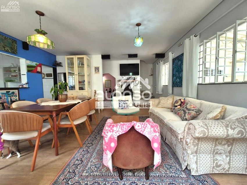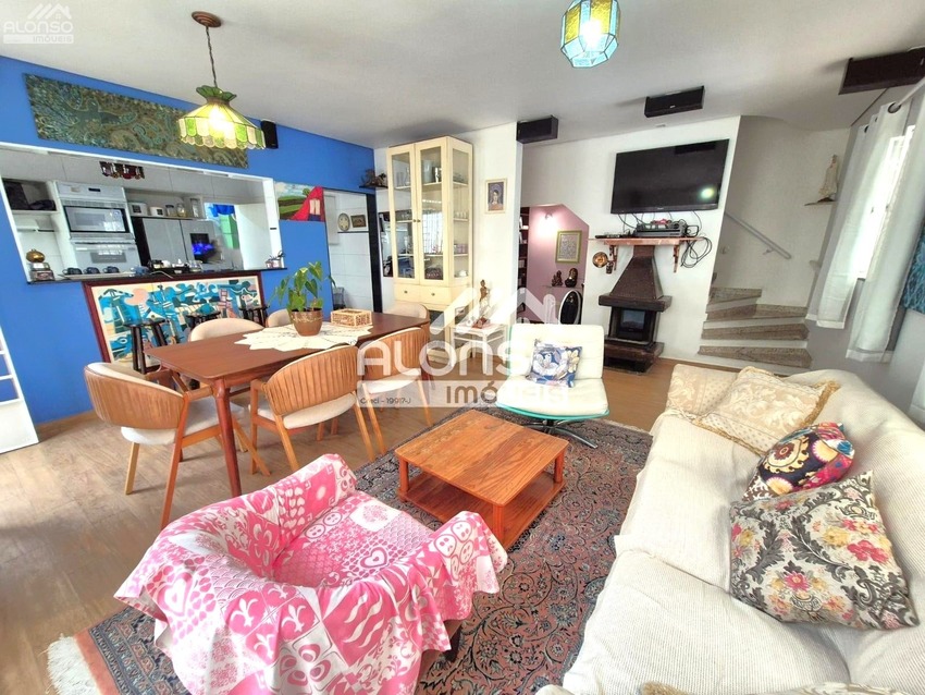 - Sala de estar ampla, com lareira e integração à sala de jantar;