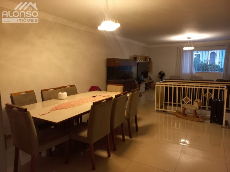 Sala com 2 amplos ambientes dividindo em sala de jantar e de TV.