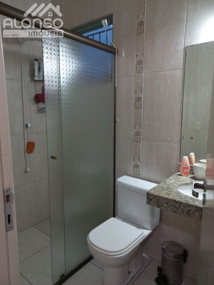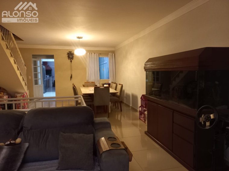 Sobrado de 3 quartos sendo 1 suíte com varanda e armarios.